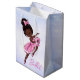 Den här vackra presentsäcksdesignen har en vacker afrikansk ballerina som dansar framför en lila bokeh-bakgrund med fairy ljus.