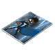 En ung toppen hjälte i en stolt hållning. En övertoning av blått används i bakgrunden med blixten i mitten.