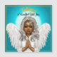 En afrikansk amerikansk ängel med utsträckt vingar och att be händer ger tidningar av både Comfort och Joy.