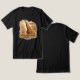 The artwork is created with textured, blended edges so it prints seamlessly into the fabric, while the gold-sand typography ensures the message remains bold and visible on dark tees.