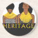 Afrikanska kvinnor som har ett BOWL med DRUMS och afrikanska kvinnor med stamcellscancer Två afrikanska kvinnor (eller afrikanska amerikanska kvinnor) står sida vid sida. Den ena är tittar, den andra upp. Den ena har en kort afro, den andra långa naturliga håret. Båda bär afrikanska tryckklänningar och stamhalsband. De är ganska moderna, men ändå kulturellt snyggt.