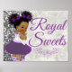 Händelsen royal Sweets Poster Skriv under med Silver shimmer och elegant, vit Perfekt för blommigten för Royal Princess Baby Shower Theme eller Royal Princess First Födelsedagsfest Anpassade Text Miss Sassy Party Design