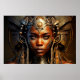 Digital konst som målar porträtt av en stiliserad afrikansk krigarprinsessa i en fantasifull afrofuturistisk form. Det här är ytterligare 100 % originaldesign för Snughamster.