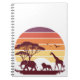 Sprid dina dagliga anteckningar, skisser eller reseplaner med den här afrikanska natursilhuettdatorn. Den här designen rymmer elegantens svarta silhuetter från en elefant, lejon och giraffe mot en gyllene orange solnedgång. Idealiskt för studenter, resenärer och djur älskare är det både ett praktiskt verktyg och ett konstens biet som man kan bära överallt.
