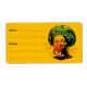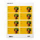 Min design har en stiliserad porträtt av en vacker afrikansk kvinna som bär ett färgstarkt huvudskrot. Huvudet är försett med grönt och gult löv mönster. Hennes ansikte är fyllt med en solnedlagd silhuett, komplett med fåglar som flyger över himmel och ett landskap med träd. Hon bär stora, ornerade örhängen och ett belagt halsband. Original Pop Art Stil Vector Illustration Copyright BluedarkArt ChameleonArt.