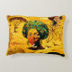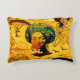 Min design har en stiliserad porträtt av en vacker afrikansk kvinna som bär ett färgstarkt huvudskrot. Huvudet är försett med grönt och gult löv mönster. Hennes ansikte är fyllt med en solnedlagd silhuett, komplett med fåglar som flyger över himmel och ett landskap med träd. Hon bär stora, ornerade örhängen och ett belagt halsband. Original Pop Art Stil Vector Illustration Copyright BluedarkArt ChameleonArt.