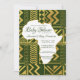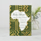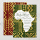 Denna Afrika Bebisdopp Invitation Tribal har falska gyllene tribalelement, Afrikaskuren mitten och utbytbara bakgrundsfärger. Du kan anpassa denna afrikanskinspirerade inbjudan för att passa valfritt färgschema som passar bra med de gyllene elementen.