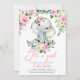 Detta är anmärkningsvärt det är en flicka baby shower inbjudan med söt elefant med rosa blommor och färsk grön arrangemang