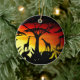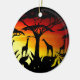 Målning av giraff i silhouetteanseende bredvid träd i den afrikanska solnedgången