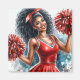 Magnet har vattenfärgsverk av en vacker brun magnetledare i rödfuktuniform med pompom och ett stort, söt leende! Hennes hår är i en hög ponytail med en röd båge, och hon bär röda läppstift. Skål för någon med den här skarpa konsten med en melaninmedlem i en sprittrad rik!