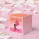 En flicka i en söt pott som håller en ballong som säger "1st" på den. Bakgrunden är en persiko-färg som tonar ner i en mörkens rosa. En söt design och ett sätt att säga tack för att du närvarade vid en speciell flickfödelsedag.