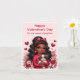 Skicka hjärtliga önskningar med vårt exklusiva Alla hjärtans dag-kort med en detaljerad digital konstillustration. Detta charmiga kort visar en kärleksfull afroamerikansk flicka som strålar av värme med sin bruna hud, iklädd en stilren röd, vit och rosa klänning. Den anspråkslösa men ungdomligt glamorösa ensemblen kompletteras perfekt av hennes långa vågiga hästsvans och ett smittsamt leende. I sina armar vaggar hon en söt valp, vilket tillför scenen en extra dos gullighet. Illustrationen är prydd med Alla hjärtans dag-dekorationer, vilket skapar en perfekt blandning av kärlek och sötma. Dela detta unika kort för att uttrycka tillgivenhet och glädje på denna speciella dag. Perfekt för alla som uppskatt