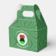 Gable-favör-låda med en ängel som bär den afrikanska diasporas flagga för dekorering av julfest eller juldekoration. Den afrikanska amerikanska Flagga julängel finns inuti en vit, otydlig cirkel av grå fyrkanter. Bakgrunden är en grönt fyrkanter med ojämnheter. Lägg till din egen text eller anpassa den med namn och året.