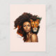 Afrikansk-amerikansk kvinna med majestisk Lejon Vykort