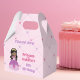 Den här berömvärda rosa prinsessans födelsedagsfest-affär har en söt svart flicka som bär en vacker rosa boll. Anpassa de här söta barnens party-gåva med ditt afrikanska barns namn och ålder i underbar lila mellan roligtens hjärta mönster.
