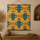 Dekorera ditt utrymme med den här öga-fångande stammasken poster, visa djärva motiv från Afrika-stil ansikte i teal och bruna på en solduk. Det upprepande mönster tillför värme, kultur och visuellt intresse till vilket rum som helst. Perfekt för hemmet, studion eller klassrumsdeka med kreativ eller etniskt tema.