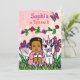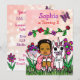 Söt vismisk saga stil afrikansk-amerikansk eller latinamerikansk flicka fairy Birthday-inbjudningar med fasad konsthantskisserade älvor, blommor och fjärilar från stil-hand. Koral, lila, rosa, rött, kalkgrönt och alla typer av söt ljusa färger!