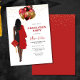 Inbjudan till afrikansk kvinnlig Studentfest. Studentfest Inbjudan, svart klänning, rött lock och grå, långa mörkar i porträtt teckning. Faux foil ballongdesign.
