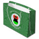 En stor presentväska har en ängel som bär den afrikanska diasporas flagga för dekorering av helgdag eller juldekoration. Den afrikanska amerikanska Flagga julängel finns i en vit, cirkelformad rektangel med bläckfisktorn. Bakgrunden är en grönt som består av fyrkanter. Lägg till din egen text eller anpassa den med namn och året. Kwanzaa gåva kanske också blir en fin.