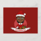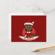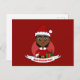 Med vykort med en illustration av en söt, leende afrikansk flicka med svart hår från kort bär flickan en Jultomten-dräkt med en röd hatt och en present; i en röd cirkel på en röd bakgrund, med en redigerbar textmall för ditt namn eller meddelande