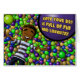 En ung pojke leker i olika färg bollar. Färdkortet är till för pojken att inse att allt som händer på en födelsedagsfest är specifikt till honom för att han är speciell.