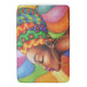 Stilized African Woman porträtt, klädd och omgiven av Ljusa färger Vax Fabric Design. Original Hand Teckning Copyright BluedarkArt.