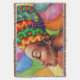 Stilized African Woman porträtt, klädd och omgiven av Ljusa färger Vax Fabric Design. Original Hand Teckning Copyright BluedarkArt.