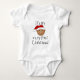 Kid stil skriver: "Det är min allra första jul" och ett afrikanskt amerikanskt baby är klädt i en julklapp på anpassadet första jul tote bags, T-shirts med mera.