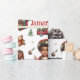 🎄 Backa dina gåvor i festlig glädje med den här fina juldesignen! 🎁 med en afrikansk amerikansk pojke och hans söta 🐶, både klädd i charmerande rött och grönt pläderade helgdag. Den lilla pojkens suspenderare, fluffy jul 🎅 och mousserande brunt ögon ger glädje till säsongen. Komplett med en vintage röd lastbil, pläterade presentlådor med stora gröntar, Julgranar, mysiga nallar och pläterade prydnadsföremål, är detta vackra mönster perfekt för att sprida helgdag. Anpassa det med ditt barns namn för en speciell beröring i extra! ✨