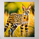 En slående porträtt av en vild serval med dess utpräglade fläckiga jackar och ett stort öron i en grassi afrikansk savanna. Utforska skönheten hos denna elegant vild katt art. Perfekt för vilda djur och stora kattentusiaster (denna design gjord med AI). Ställe beställer i dag och Kämpa på köpet!