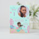 Liten sjöjungfru första födelsedags inbjudan kort med undervattensvarelser med fotoinsättning small mall.