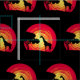 Den afrikanska solnedgångillustrationen med den röda grungesolen, giraffet och träd silhouette dekoration på svart bakgrund. Det är möjligheten som ändrar bakgrundsfärgen och att tillfoga olik till designen med ditt primat.