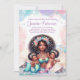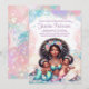 Tvilling sjöröding baby shower inbjudningar med vacker afrikansk sjöröding mamma som håller två söta sjöröding bebisar på en fin pastellfärgad bubblor och snäckor bakgrund. Denna tvilling sjöröding baby shower inbjudan är lätt att anpassa för ditt evenemang genom att helt enkelt lägga till dina detaljer. Du kan också lägga till en bakgrundsfärg på framsidan och baksidan.