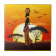 Afrikansk vackra Woman Silhouette på Afrikas Sol Kakelplatta