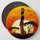 Afrikansk vackra Woman Silhouette på Afrikas Sol Knapp