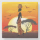 Afrikansk vackra Woman Silhouette på Afrikas Sol Stenunderlägg