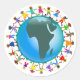 Cute tecknad illustrerar en grupp av lycklig och olika pojkar och flickor som håller händer i en värld med karta i Afrika. Bild finns tillgänglig på olika presenter och produkter. Anpassa om du föredrar och ändrar bakgrunden färg eller lägger till text.