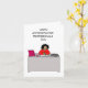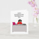 Ett enkelt exempel på en afrikansk amerikansk sitta dam vid hennes kontor. Bilden ställs in mot den vita bakgrunden och åtföljs av ord "Lycklig administrativ Professionell Day".