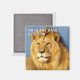 Fyrkantig spara-till-datum-magnet med en bild av en afrikansk lejon. Se matcha konetti, favör säck, favör tagg, stor presentväska, etikett, kvadratklistermärke och papprare omslag. Se hela Safari Magnet-samlingen i de SPECIELLARE TUCHERNA| Avsnittet Party favors.