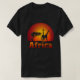 Anpassadeafrikaskjorta med vektorillustrationen av två giraff och trädsilhouette på solnedgången i den afrikanska savannaen.