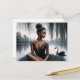 Det här ballettemade vykortet innehåller teckningar från ett mörk-flått ballerina sitta framför sjö, under ett villigt träd. En svart svan simmar på vatten kropp bakom henne. Målningen har en moody känsla med sitt gråskaleschema färg, spara för rikens bruna hud på eleganten, spetsig balettdansare. Hon är tittar vid sidan av vad hon föreslår för denna mörk porträtt. Underbar för fläkt av mörk-balletcore och melanin-rik-balettestetik.
