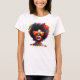 Höj stil med vår fantastiska T-shirt-design för "Afro Chic Sunglass". Den här noggrant utarbetade konsten firar de svarta kvinnornas skönhet och förtroende med sin slående kombination av en fet afro-stil och slimmade solglasögon.