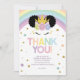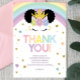 Detta är ett afro puff enhörning och regnbåge tema födelsedagsfest tack-kort.