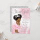 Afrikansk prinsessa bebis shower via post inbjudan med söt prinsessa bebis flicka med snygg afro frisyr iklädd en skrynklig rosa tutu och silver krona med en pärlhalsband på en vacker rosa och silver bakgrund. Denna post inbjudan till bebis shower kan enkelt anpassas för ditt evenemang genom att lägga till dina uppgifter i den typsnittsstil och färg och formulering du väljer.