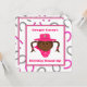 Dessa söta födelsedagsinbjudningar för flickor är den perfekta starten för varje cowgirl-inspirerad födelsedagsfest! Inbjudan har en vit bakgrund med rosa och silverfärgade hästskor som ser ut som metall. I mitten finns en solid vit fyrkant med varmt rosa kant. Det finns en tecknad bild av en liten afroamerikansk cowgirl med svart hår. Denna söta lilla cowgirl har flätor, fräknar och en liten leende på sin ansikte. Hon har en varmt rosa cowgirlhatt med en blank guldfärgad sheriffstjärna. Runt halsen har hon en varmt rosa bandana med paisleymönster. Det finns text i ett roligt, fet stil med varmt rosa färg. Texten kan anpassas efter dina behov. Baksidan av inbjudan har samma hästsko-bakgrund med ett större vitt område för din text, i samma varmt rosa typsnitt. All text på baksidan är också anpassningsbar