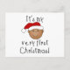 Barnstil text "It's My Very First Christmas" och en afroamerikansk baby är klädd i en julstrumpmössa på anpassningsbara första julen väskor, T-shirts, med mera.