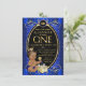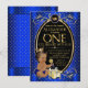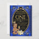 Afroamerikanska prinsens första födelsedagsfestinbjudningar med söt etnisk prins bebis pojke som bär en kunglig blå blöja och guldkrona på en vacker kunglig blå och guldbakgrund. Dessa kungliga prinsens 1-års födelsedagsfestinbjudningar kan enkelt anpassas för ditt evenemang genom att helt enkelt lägga till dina uppgifter.