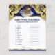 Afroamerikanska prins-babyshower-spel med babyspråk-språkläxa på ena sidan och visdomsramsuppvisning på den andra. Denna kungliga blå och guld prins-babyshower-spel affisch är rolig och prisvärd! Du kan ändra frågorna och orden. Dela ut dem till dina gäster och tala om för dem att inte titta, starta sedan klockan. När tiden är slut läs upp svaren och personen med mest rätt vinner ett pris. Slå en slant eller något liknande för att bryta oavgjorda lägen. Du kan också lägga till dina egna ord och rim.