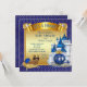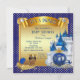 Kungliga blå och gyllene prins barnkalas inbjudningar med söta afroamerikanska etniska bebis prins på en söt gyllene kudde på en vacker kunglig blå och gyllene slott och kunglig vagn bakgrund. Dessa kungliga blå och gyllene prins barnkalas inbjudningar är lätta att anpassa för ditt evenemang genom att helt enkelt lägga till dina uppgifter.