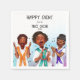 En afroamerikansk trio iklädd vitt med individuellt färgade sjerp klädda kvinnor prisar högtiden med jublande ljud från händer, röster och instrument.